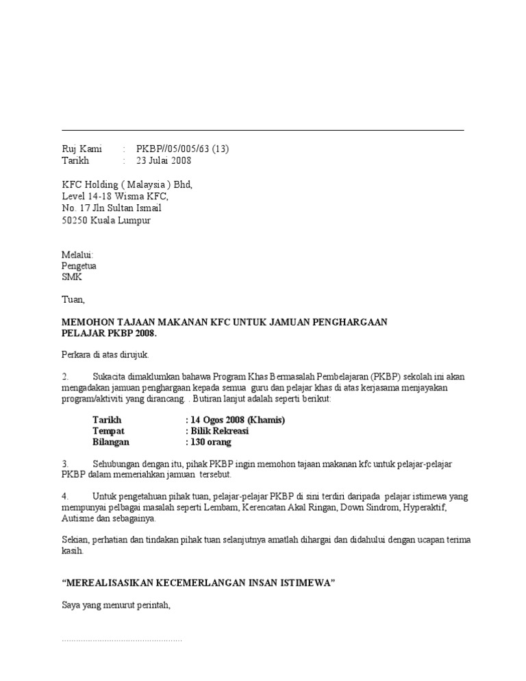 Contoh Surat Rasmi Memohon Sumbangan Hamper Zhengfaye